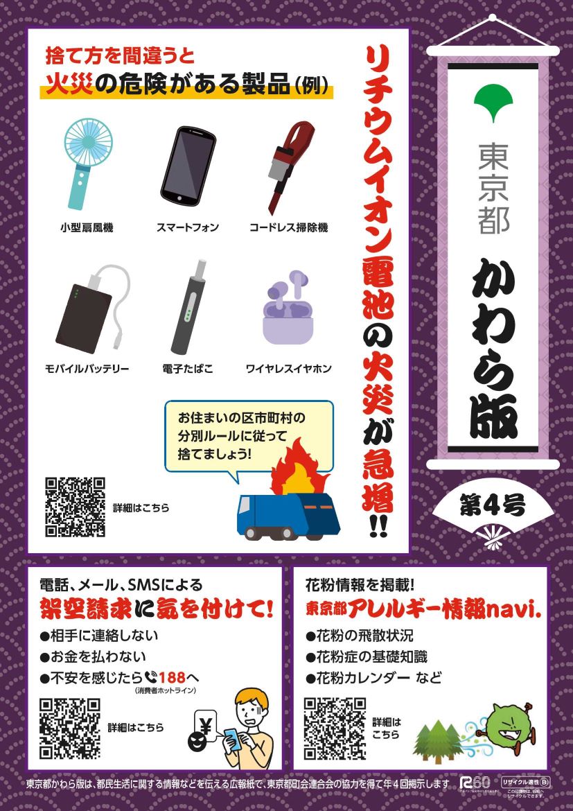 東京都は、令和7年度から、東京都町会連合会と連携し、事業協力に応じていただいた町会・自治会の掲示板を通じて、地域の安心・安全につながる注意喚起や情報提供などを年4回、かわら版の形で、発信しています。