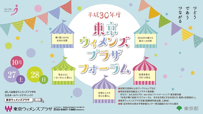 東京ウィメンズプラザでは、男女平等参画社会の実現に向け、都民、民間団体、都内の男女平等参画にかかわる行政機関等が、様々なイベントを通じて交流を深める「東京ウィメンズプラザフォーラム」を開催します。