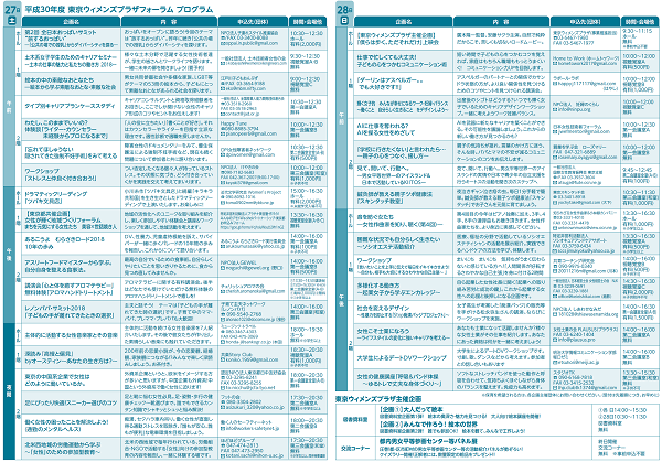 男女平等参画の促進、女性の活躍推進、ライフ・ワーク・バランスの実現、DV防止等をテーマにしたワークショップや講演会など、33の民間団体による催しを実施!