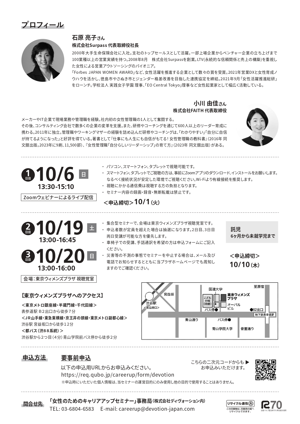 ●「女性活躍推進事業」事務局(株式会社ヒューマンアカデミー)03-5348-2039